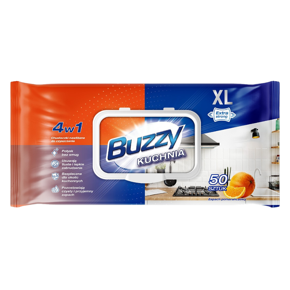 Udržujte svoju kuchyňu čistú a sviežu s praktickými vlhčenými utierkami Buzzy. Každé balenie obsahuje 50 ks odolných utierok, ktoré sú ideálne na utieranie povrchov, odstránenie škvŕn, mastnoty a nečistôt.